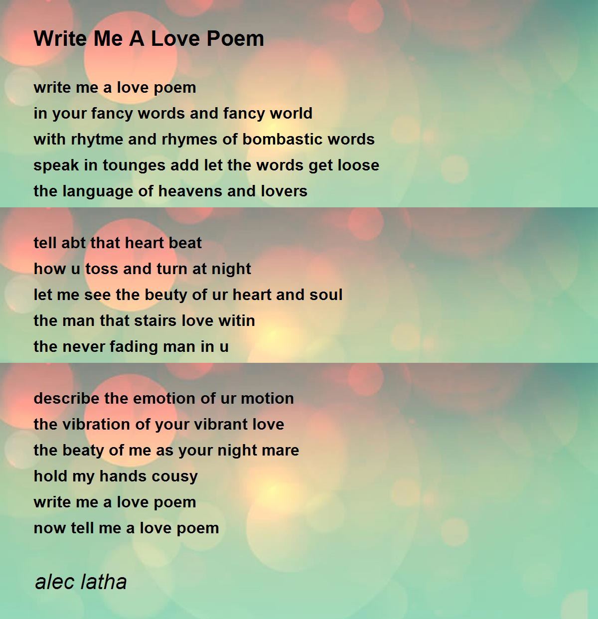 How To Write A Love Poem - We did not find results for:. Maybe you would like to learn more about one of these? We did not find results for: How to write a love poem. Check spelling or type a new query.